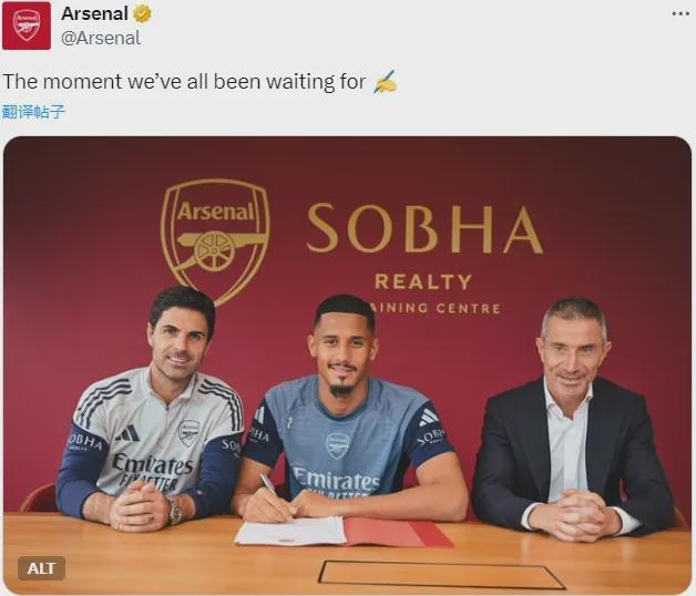 官方:阿森纳宣布和萨利巴签下了一份长期合同。
