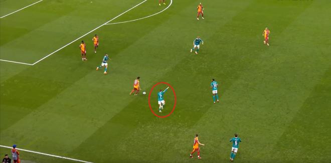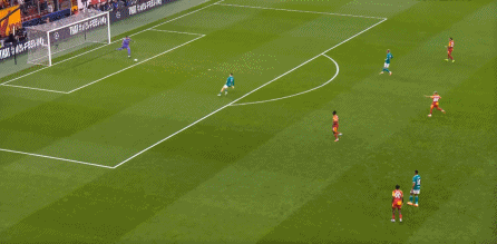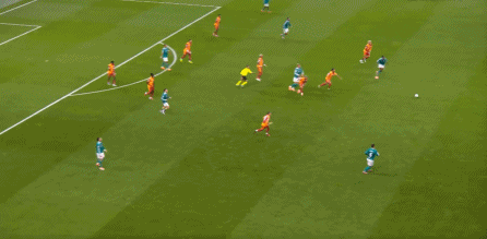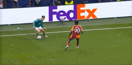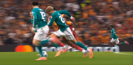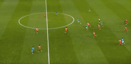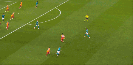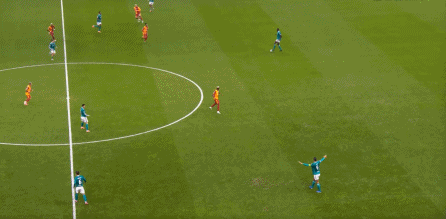 所以从某种角度上来说,如果你将弗林蓬视为一个兼具进攻和防守职责的球员,并非萨拉赫的代打,就像他在开场之后,就多次打击加拉塔萨雷的纵深: