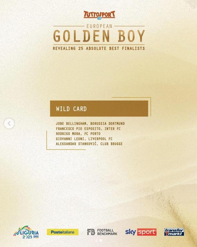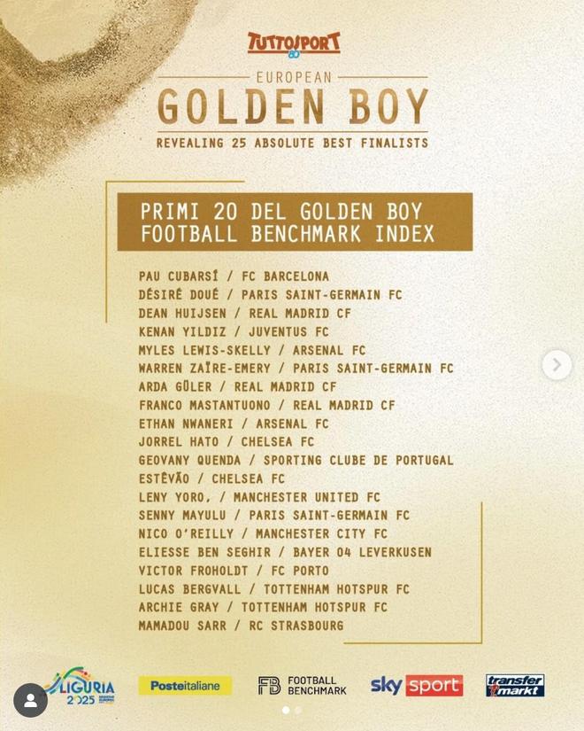2025金童奖25人候选:杜埃、居莱尔领衔,库巴西、伊尔迪兹在列