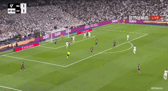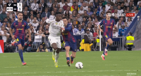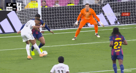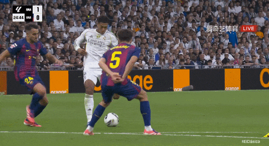 西甲第10轮,皇家马德里对阵巴塞罗那。上半场皇马进攻效率极高,姆巴佩冷射进球被吹,维尼修斯造点也被VAR吹掉;贝林厄姆灵巧直塞, 姆巴佩单刀球破门;费尔明跟进推射破门;贝林厄姆门前笑纳大礼破门。