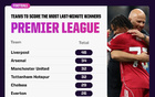 英超球队绝杀榜:利物浦46次居首,阿森纳34次列次席